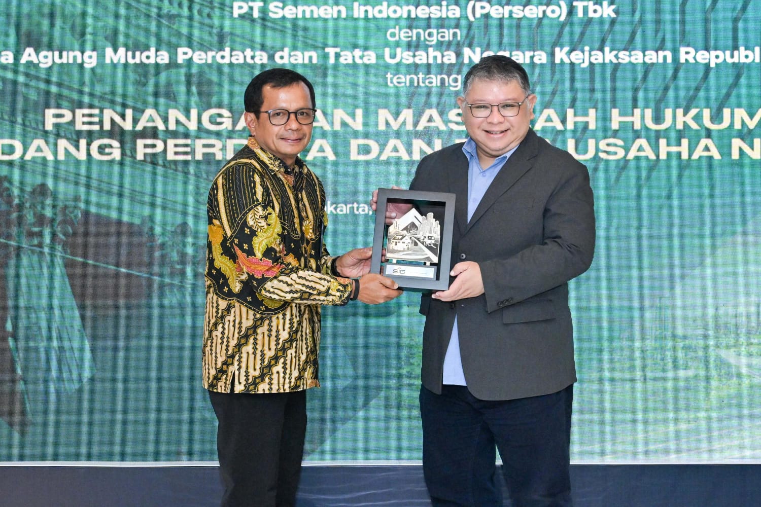 Kerja sama ini ditandai dengan Penandatanganan Perjanjian Kerja Sama oleh Direktur Utama SIG, Donny Arsal dan Jaksa Agung Muda Perdata dan Tata Usaha Negara (Jamdatun), R. Narendra Jatna di The East Tower, Jakarta, belum lama ini.