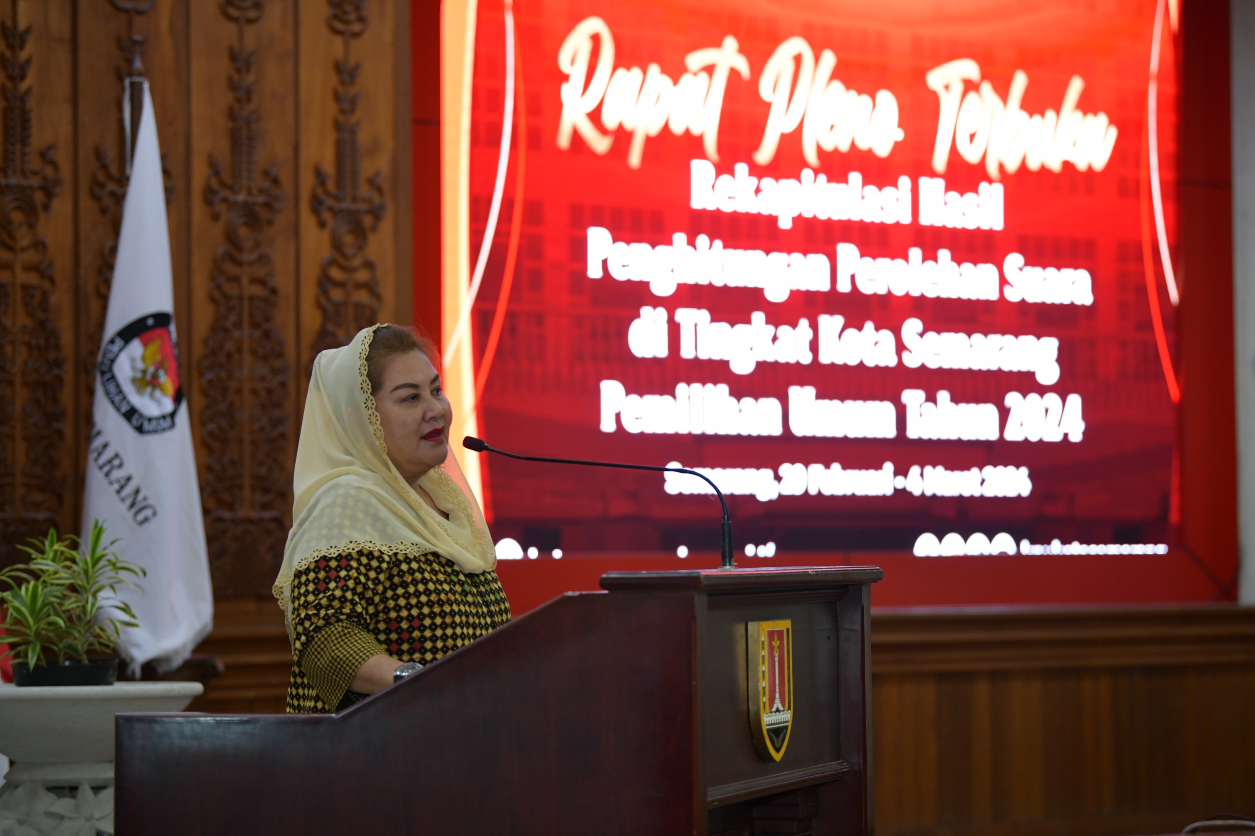 “Alhamdulillah di Kota Semarang pertisipasi pemilih mencapai 85 persen,” kata Mbak Ita, saat Rapat Rekapitulasi Hasil Perhitungan Perolehan Suara Pemilu 2024 di Ruang Lokakrida Lantai 8 Gedung Moch Ikhsan, Kompleks Balai Kota Semarang, Kamis (29/2).