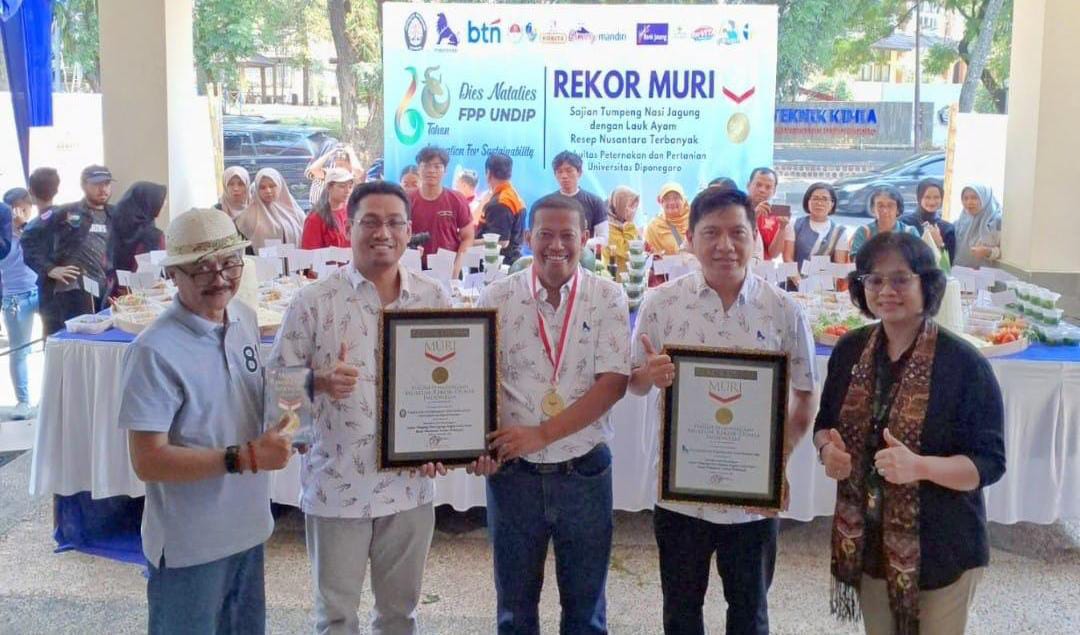 SEMARANG (Pertamanews.id) – Universitas Diponegoro (UNDIP) melalui Fakultas Peternakan dan Pertanian (FPP) sukses memecahkan Rekor MURI (Museum Rekor Dunia Indonesia) dan Rekor Dunia dengan sajian tumpeng nasi jagung dengan lauk ayam Nusantara varian terbanyak.