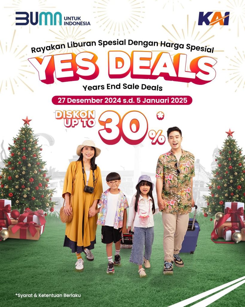 SEMARANG (Pertamanews.id) – PT Kereta Api Indonesia (Persero) menghadirkan Program Diskon Year End Sale Deal (YES Deal) untuk menyambut pergantian tahun. Melalui program ini, masyarakat dapat membeli tiket kereta api dengan diskon sebesar 15 hingga 30 persen dari tarif normal.