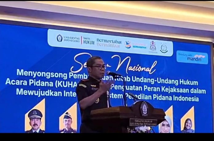 Hal tersebut disampaikan dalam Seminar Nasional bertema “Menyongsong Pembaharuan KUHAP melalui Penguatan Peran Kejaksaan dalam Mewujudkan Integralitas Sistem Peradilan Pidana Indonesia” yang digelar di Kejati Jateng dan Fakultas Hukum Universitas Diponegoro (Undip) Semarang, di Kampus Tembalang, Kota Semarang, Rabu (24/7).
