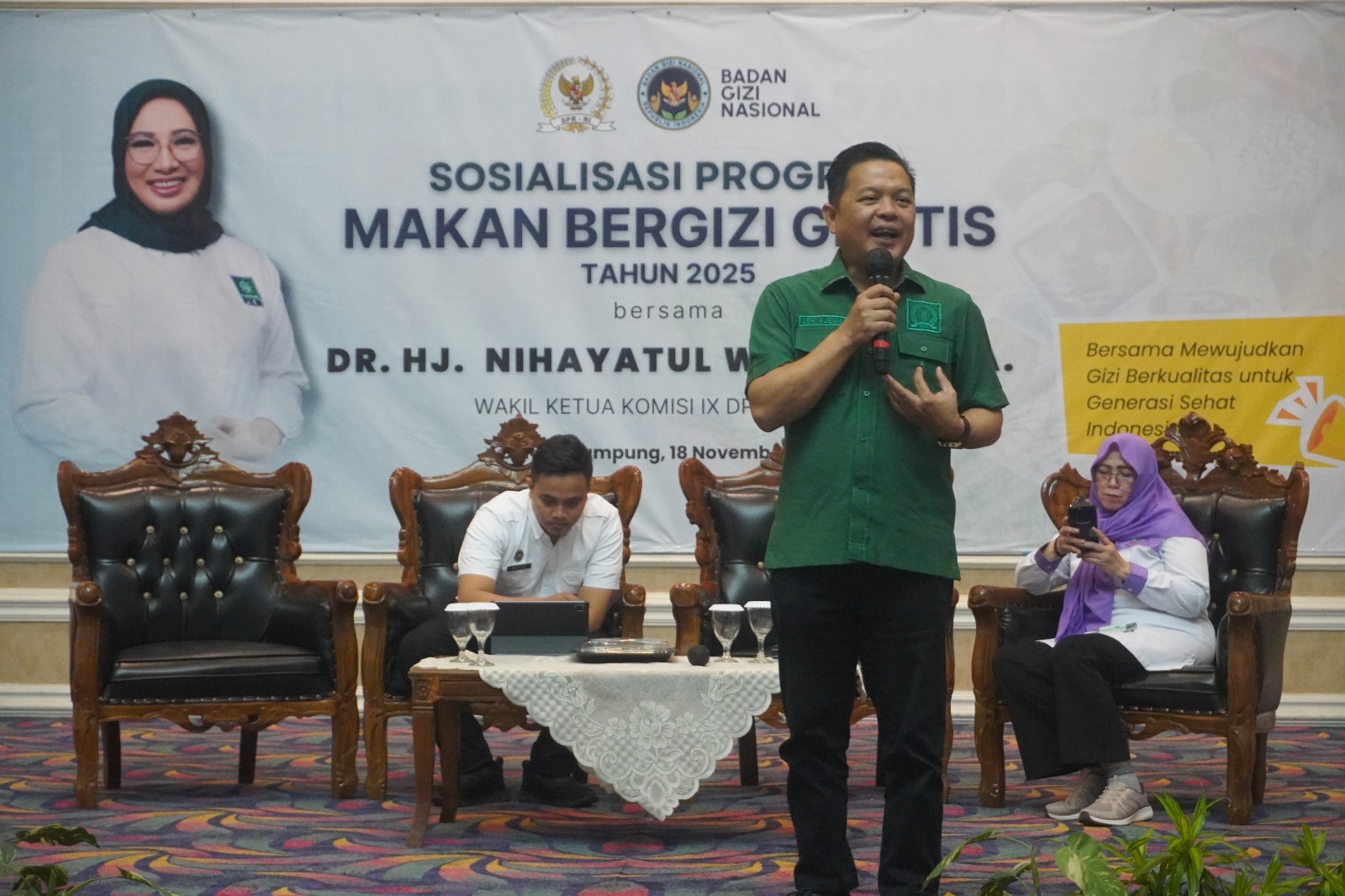 BANDAR LAMPUNG (Pertamanews.id) – Pemerintah bersama para pemangku kepentingan di Provinsi Lampung menggelar kegiatan sosialisasi program Makan Bergizi Gratis (MBG) di Balai Keratun Pemprov Lampung pada Selasa (18/11). Langkah ini merupakan komitmen pemerintah untuk tetap melayani rakyat dengan memberikan kebermanfaat ganda bagi masyarakat.