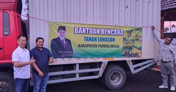PURBALINGGA (Pertamanews.id) – Ketua Fraksi Partai Golkar DPRD Provinsi Jawa Tengah, Ferry Wawan Cahyono, menunjukkan kepedulian nyata terhadap warga terdampak bencana banjir di Desa Sangkanayu, Kecamatan Mrebet, Kabupaten Purbalingga.